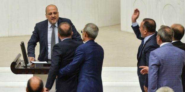 HDP İstanbul Milletvekili Ahmet Şık'ın hakarete varan sözlerinin ardından tansiyon bir anda yükseldi. AK Parti ile HDP'li milletvekilleri karşı karşıya geldi. Bu sırada en önde yer alan isim, AK Parti İzmir Milletvekili Alpay Özalan'dı. AK Partili vekiller tarafından güçlükle durdurulan Özalan, kürsünün kimseye hakaret hakkı vermediğini söyledi.