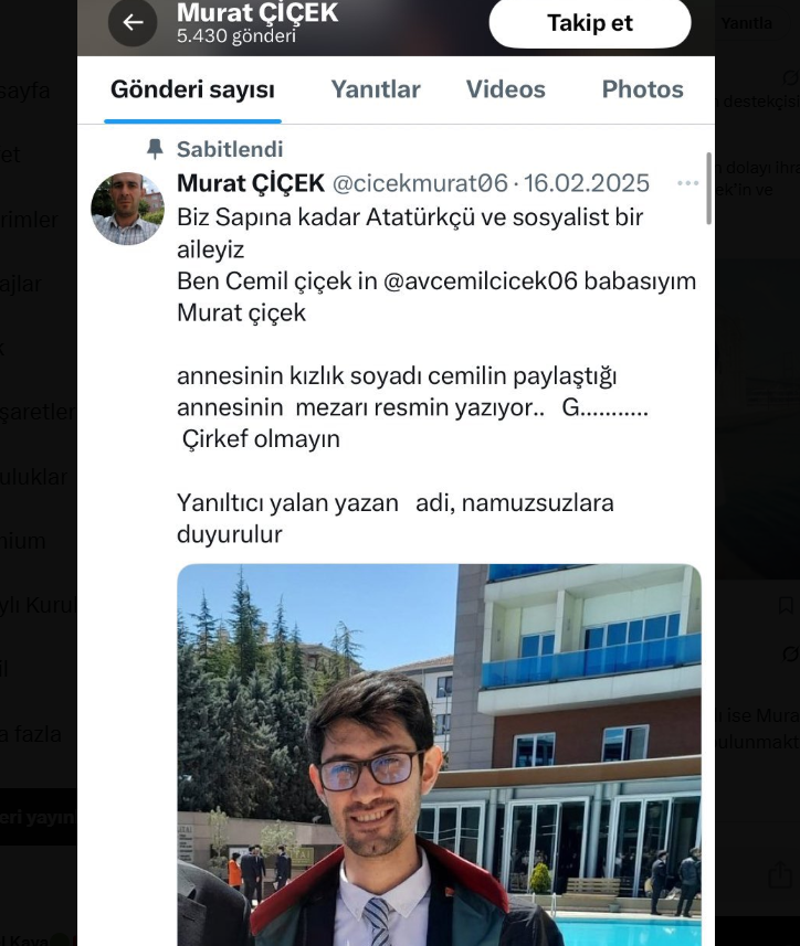 Bir dönem “Atatürkçü” söylemlerle CHP tabanına şirin görünmeye çalışan, sonradan FETÖ iltisakı netleşen Av. Cemil Çiçek’in kirli geçmişi bir bir dökülüyor. Polis okulundan atılan, babası emniyetten ihraç edilen ve aile boyu FETÖ bağlantısı bulunan Çiçek’in, FETÖ medyasıyla kurduğu karanlık ilişkiler de belgeleriyle ortaya çıktı.