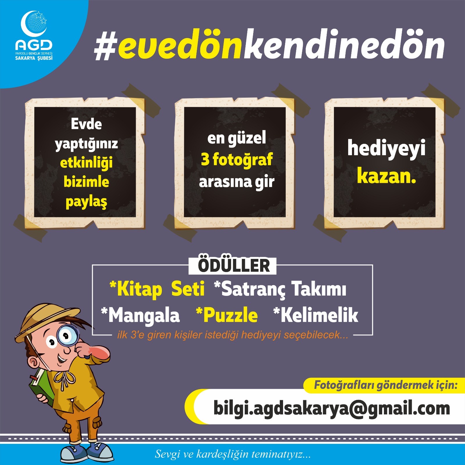Anadolu Gençlik Derneği Sakarya Şubesi, içinde bulunduğunuz pandemi sürecinde “Eve dön kendine dön” temalı fotoğraf yarışması düzenliyor.