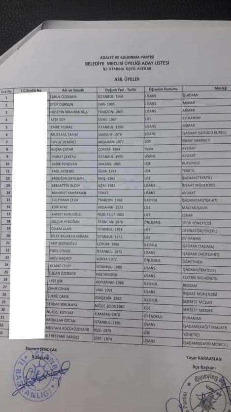 AK Parti Avcılar İlçe Başkanlığı, İlçe Seçim Kurulu’na aday listesini teslim etti. İşte AK Parti Avcılar Belediye Meclis üyesi aday isim listesi 2019