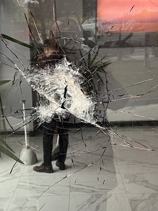 Saldırgan taş ve tuğla ile ilçe başkanlığının camlarını kırdı. Polis, saldırganı yakalamak için çalışmalarını sürdürüyor.