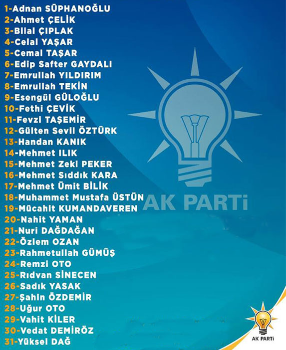 AK Parti aday listesi için: tıklayınız