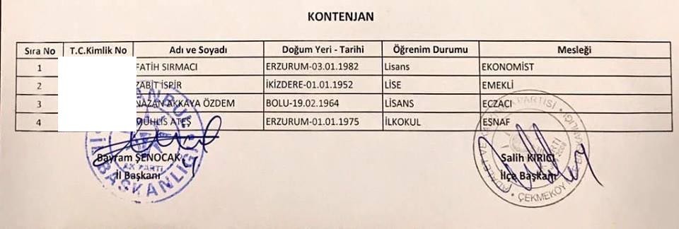 AK Parti Çekmeköy İlçe Başkanlığı, İlçe Seçim Kurulu’na aday listesini teslim etti. İşte AK Parti Çekmeköy Belediye Meclis üyesi aday listesinde yer alan bazı isimler şöyle oldu: Şahmettin Yüksel, Leyla Gülden Kıldan, Şenol Alan, Rıdvan Bural, Yılmaz Sezgin, Hamza Çoban, Nazmiye Çetin.