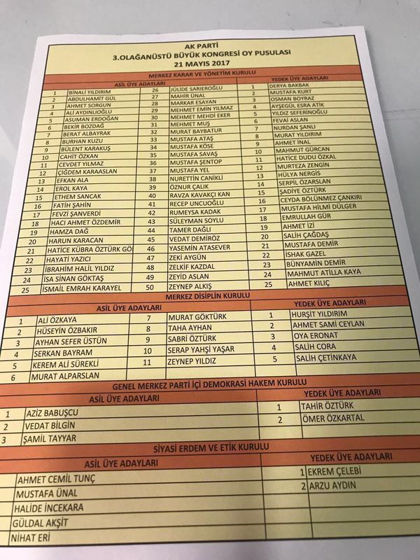 21 MAYIS’TA YAPILAN 3. OLAĞAN ÜSTÜ KURULTAYDA MKYK'DA LİSTESİNE GİREN İSİMLER ŞUNLAR OLMUŞTU