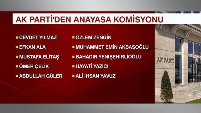 AK Parti Genel Başkanvekilleri Efkan Ala ve Mustafa Elitaş, AK Parti Genel Başkan Yardımcıları Hayati Yazıcı ve Ali İhsan Yavuz, AK Parti Sözcüsü Ömer Çelik, AK Parti Grup Başkanı Abdullah Güler, AK Parti Grup Başkanvekilleri Özlem Zengin, Muhammet Emin Akbaşoğlu ve Bahadır Yenişehirlioğlu yer alacak.