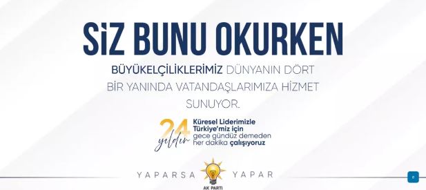 AK Parti Tanıtım ve Medya Başkanlığı, iktidara gelişlerinin 23. yıl dönümü dolayısıyla "#SizBunuOkurken" isimli kampanya başlattı.