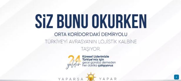 AK Parti'den yapılan açıklamaya göre Tanıtım ve Medya Başkanlığınca, 3 Kasım 2002 seçimleriyle iktidara gelişlerinin 23. yıl dönümü dolayısıyla Türkiye genelinde kapsamlı açık hava kampanyasının başlatıldığı bildirildi.