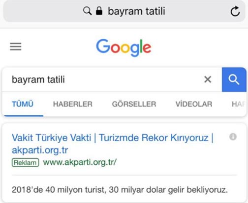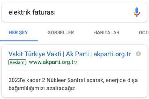 İnternet kullanıcıları; gündem ve ihtiyaçları ile alakalı yaptığı aramaların sonuçlarında AK Parti’nin seçim beyannamesinde yer alan icraatleri ile karşılaştı.