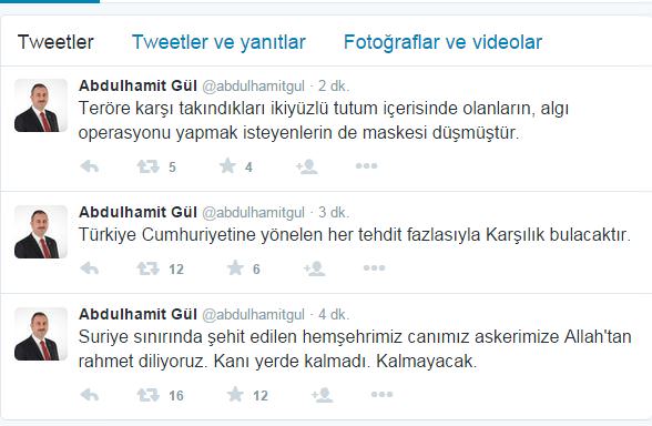 AK Parti Genel başkan Yardımcısı Abdulhamit Gül, twitter adresinden şehit olan asker için baş sağlığı dilerken algı operasyonu yapmak isteyenlerin de maskesinin düştüğünü açıkladı.