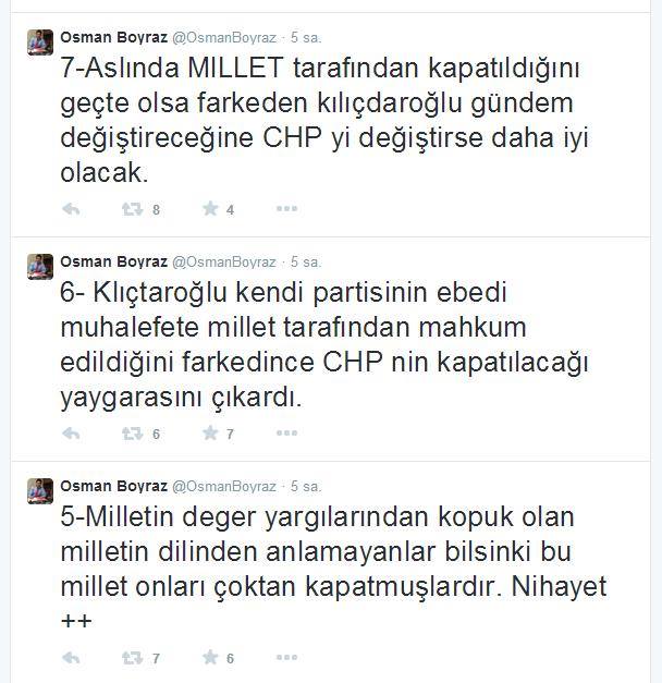 AK Parti İstanbul Milletvekili Osman Boyraz, resmi twitter hesabından yaptığı açıklama ile Kemal Kılıçdaroğlu’na yüklendi.