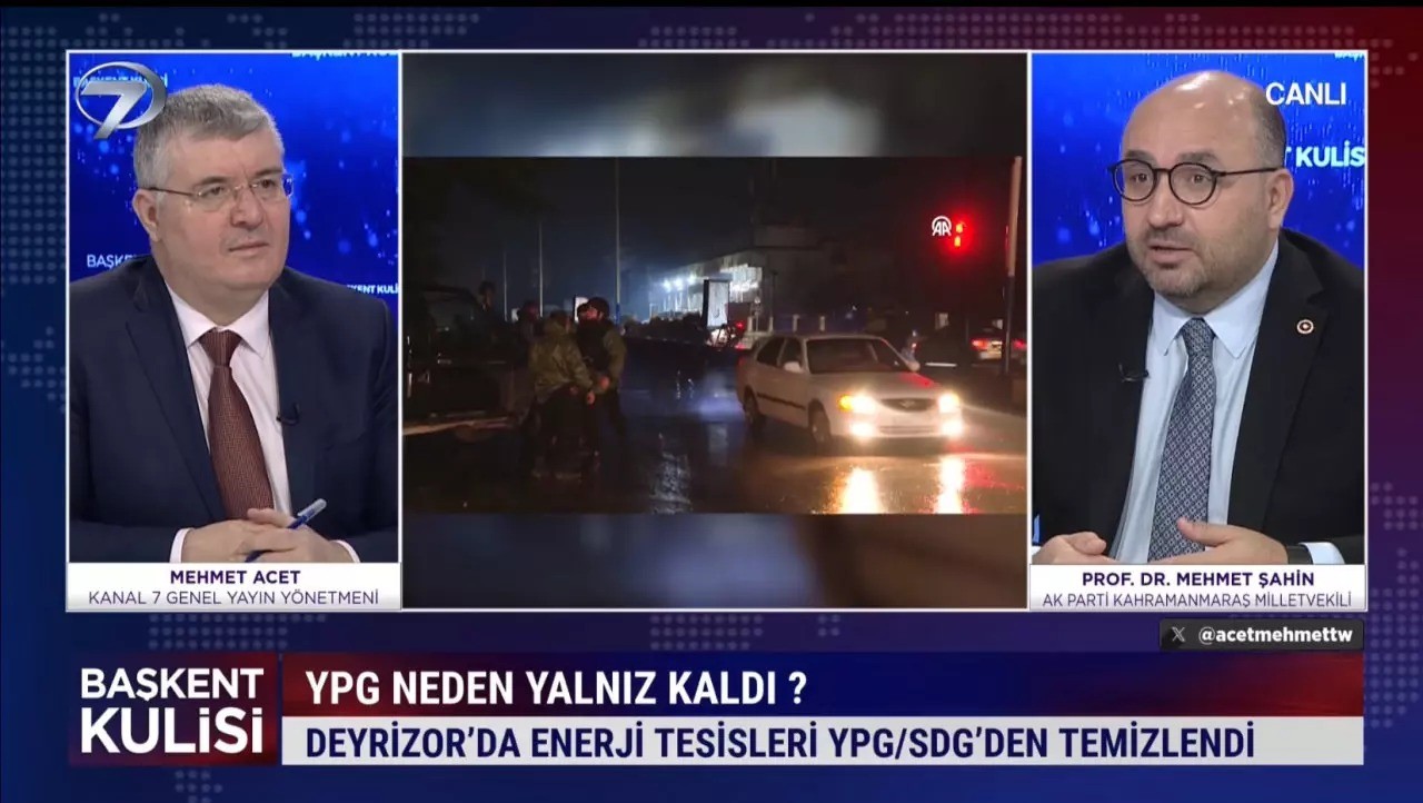 AK Parti Kahramanmaraş Milletvekili Prof. Dr. Mehmet Şahin, Kanal 7 ekranlarında yayınlanan Başkent Kulisi programında Kanal 7 Genel Yayın Yönetmeni Mehmet Acet'in konuğu oldu. PKK’nın raf ömrünün dolduğunu ifade eden Prof. Dr. Mehmet Şahin, Suriye’de yaşanan sıcak gelişmeleri ise "Geldikleri gibi gidiyorlar" sözleriyle özetledi.