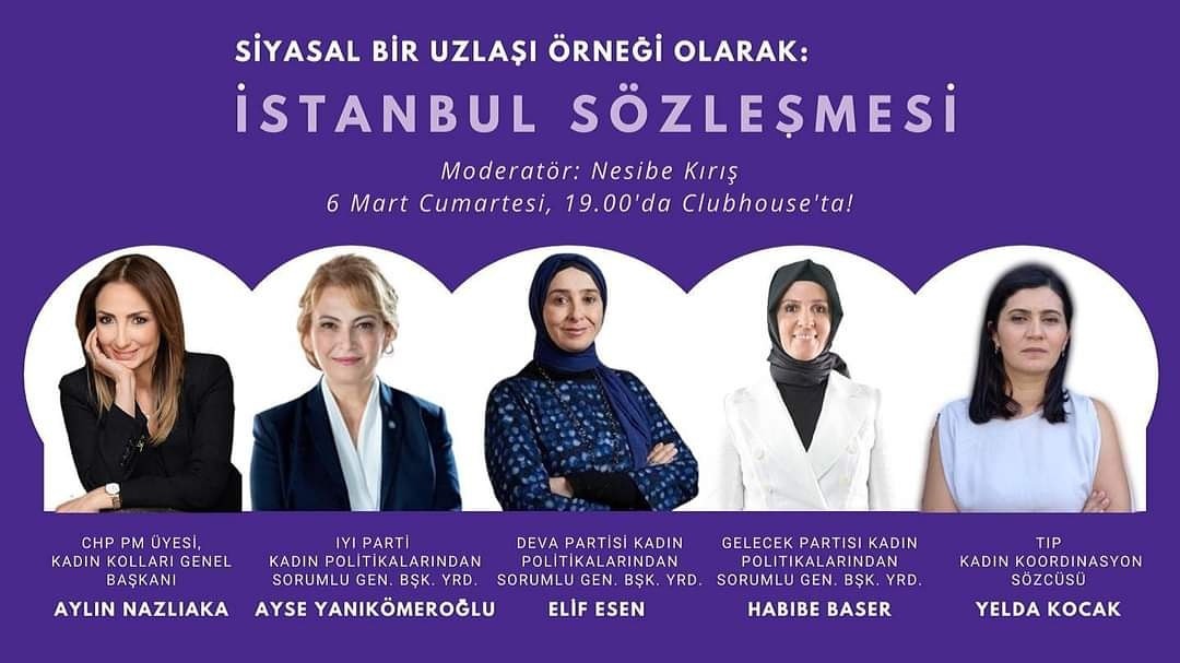 Başörtüsüne olan düşmanlığıyla bilinen CHP'li Aylin Nazlıaka ile müftülere nikah kıyma yetkisi verilmesini, "çocuklara cinsel istismarı artıracak" şeklinde yorumlayacak kadar dindar karşıtlığında çukurlaşan sözde Av. Yelda Koçak bugün saat 19:00'da Clubhouse'daki "Siyasal bir uzlaşı örneği olarak: İstanbul Sözleşmesi" tiyatrosunda buluşacak. Nazlıaka ve Koçak'ın yanında terör örgütü HDP ile iş kotaran İP adına Ayşe Yanıkömeroğlu da olacak.