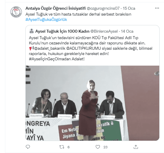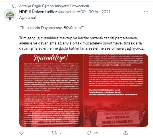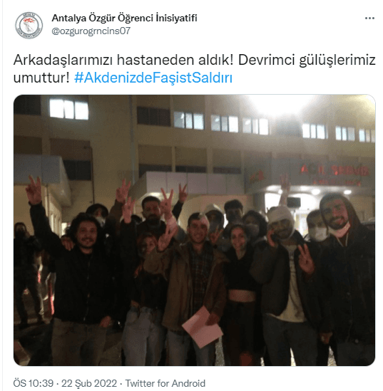 Akdeniz Üniversitesi'ndeki PKK sevici üniversitelilerin "Antalya Özgür Öğrenci İnisiyatifi" adlı Twitter hesabından duyurulan olayla, hesaptan yapılan bazı paylaşımlar şöyle: