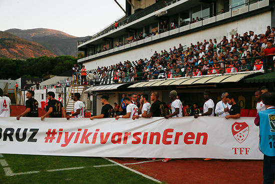 Takımlar sahaya "Şehitlerimizi Saygıyla Anıyoruz #iyikivarsınEren" pankartıyla çıktı.