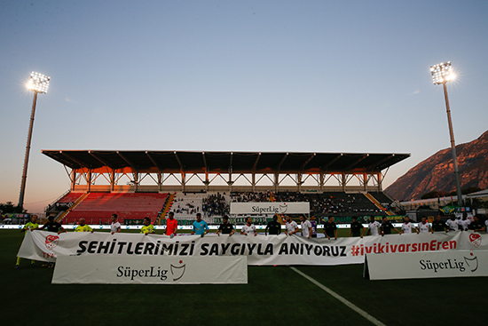 Öte yandan takımlar, Trabzon'un Maçka ilçesindeki terör saldırısında hayatını kaybeden 15 yaşındaki Eren Bülbül ve Jandarma Astsubay Kıdemli Başçavuş Ferhat Gedik için karşılaşma öncesinde 1 dakikalık saygı duruşunda bulundu.