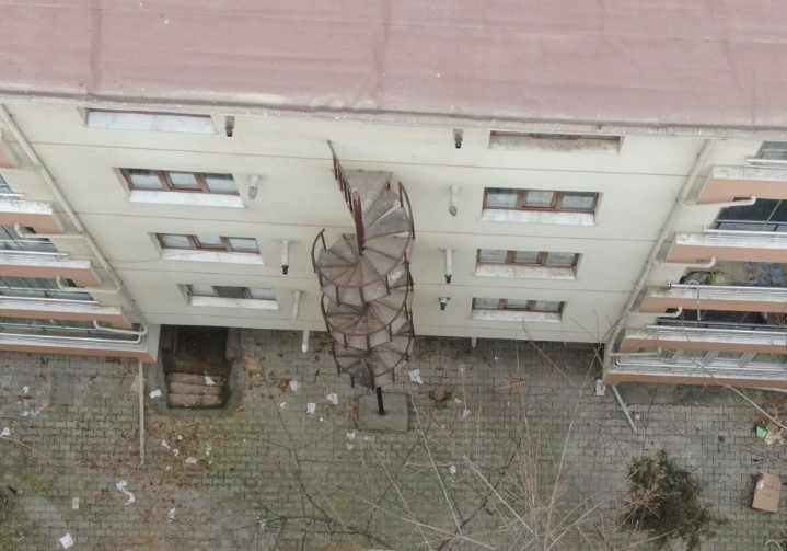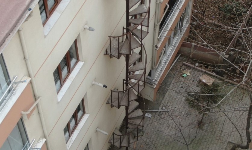Üniversite Mahallesi Efe Sokak’ta bulunan 5 katlı binanın yangın merdiveni görenleri hayrete düşürdü. Binanın dış cephesine monte edilen yangın merdivenine giriş ve çıkışın olmadığı görüldü. Duvarda adeta süs gibi duran merdiven, görenlerin tepkisini çekti.