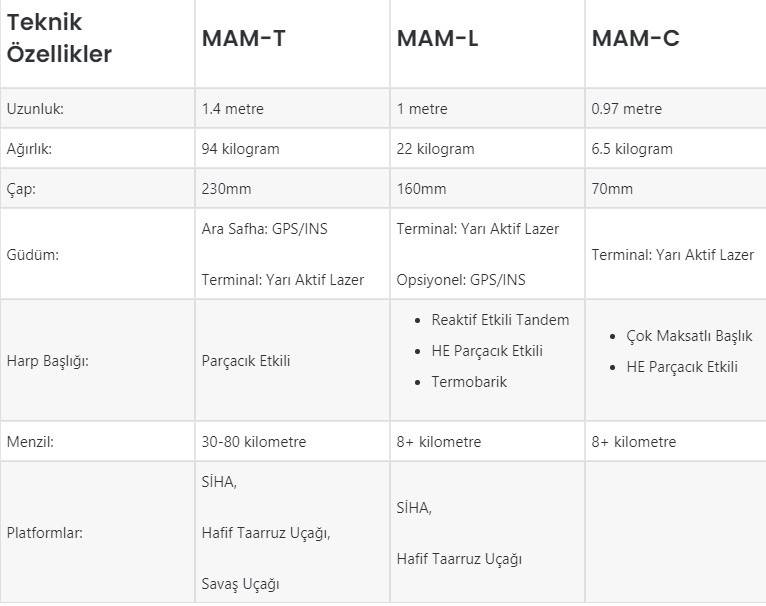 Bu sebepten ötürü Roketsan, L-UMTAS Füzesi üzerinden 22.5 kilogram ağırlığındaki MAM-L mühimmatını ve CİRİT Füzesi üzerinden ise 6.5 kilogram ağırlığındaki MAM-C mühimmatını geliştirdi. Türk SİHA’ları bu mühimmatlarla çok başarılı görevler icra ettiler ve adlarını muharebe sahasına altın harflerle yazdırdılar.