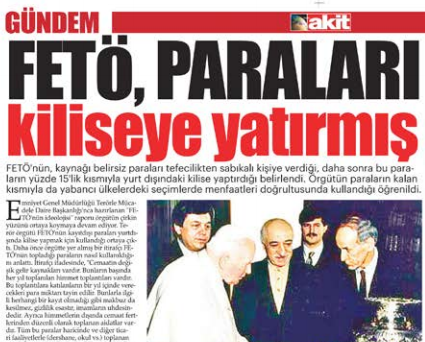 Şer cephesinin rahatsız olduğu Akit gazetesi, FETÖ’ye aman vermedi. Gazetemizde çeşitli zaman dilimlerinde yayınlanan “FETÖ de 28 Şubat’ın planlayıcılarından”, “FETÖ üniversitesinden başörtülüyüz diye atıldık”, “Başörtüsü mücadelemizi Gülen kırdı”, “Gülen himmetleri kiliseye akıtmış” haberleri, eli kanlı FETÖ çetesinin hain icraatlarını ayan beyan ortaya koydu.