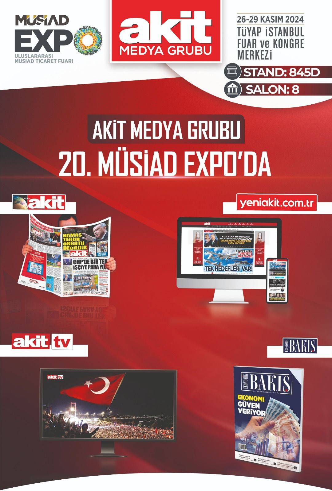 Dünyanın her noktasından yatırımcıyı bir araya getiren MÜSİAD EXPO Fuarı kapılarını ziyaretçilerine açarken, yerli ve milli medyanın yüz akı Akit Medya Grubu, Yeni akit Gazetesi, yeniakit.com.tr, Akit TV ve Ekonomik Bakış dergisiyle yer alıyor.