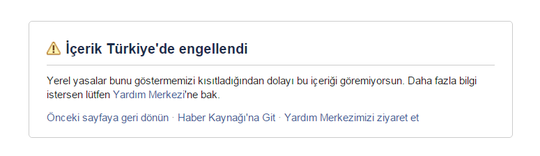 Akit TV Facebook sayfasına ulaşmak istenildiğinde çıkan uyarı: