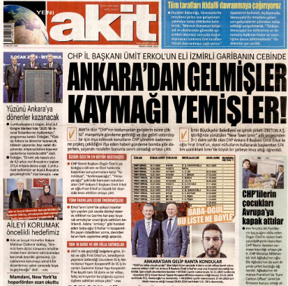 Gazetemizin belgeli yayınları yine neticesini verdi. Akit’in 4 Ocak’ta “Ankara’dan gelmişler kaymağı yemişler” manşetiyle gündeme getirdiği ve CHP Ankara İl Başkanı Ümit Erkol ile oğlu Fırat Erkol’un, siyasi nüfuzlarını kullanarak başkentten 574 km uzaklıktaki İzmir’de büyük bir kooperatif vurgununa imza attığı deşifre eden haberinin ardından bugün gözaltılar yaşandı.