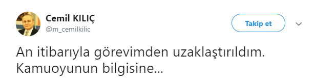 Akit'in, İslam'ı hedef alan Cemil Kılıç hakkındaki ısrarlı yayınları sonuç verdi. Sosyal medya hesabından açıklama yapan Kılıç, görevinden uzaklaştırıldığını belirtti. Kılıç, "An itibarıyla görevimden uzaklaştırıldım. Kamuoyunun bilgisine..." ifadelerini kullandı.