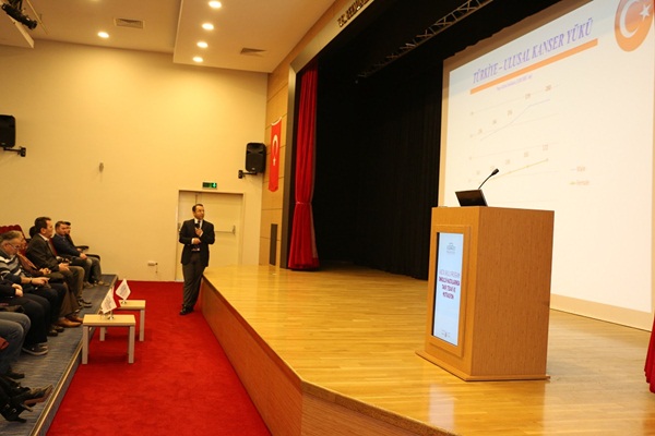 Özellikle çevresel faktörlerin kanseri tetiklediğine dikkat çeken Prof. Dr. Hacı Mehmet Türk, bunların başında hava kirliliği geldiğini belirterek, “Özellikle hava kirliliği, pasif sigara içiciliği ve astbest akciğer kanserine neden olmaktadır. Arsenic içeren içme suyu da deri kanseri, mesane ve akciğer kanseri ile ilişkilidir.” şeklinde konuştu. Kanser riskini arttıran faktörleri “Sigara, enfeksiyonlar, radyasyon, immunosuppressive tedaviler” olarak sıralayan Prof. Dr. Hacı Mehmet Türk, kanser riskini etkileyen faktörleri ise “Diyet, alkol, fiziksel aktivite, obezite ve çevresel risk faktörler” şeklinde sıraladı. Yine toplumda kansere ilişkin bazı yanlış kanıların oluştuğunun altını çizen Prof. Dr. Hacı Mehmet Türk, bunları “Kanser bulaşıcıdır. Kanser her zaman ağrıya yol açar. Şekerli gıdalar kanserin büyümesine yol açar. Ailemde kanser var ben de kanser olacağım. Ailemde kanser yok, bende kanser olmaz. Biyopsi, ameliyat kanserin yayılmasına yol açar. Kanser hastalığında tedavi hep aynıdır” şeklinde ifade etti.