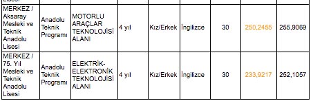 MERKEZ / Aksaray Mesleki ve Teknik Anadolu Lisesi taban puanları 2019