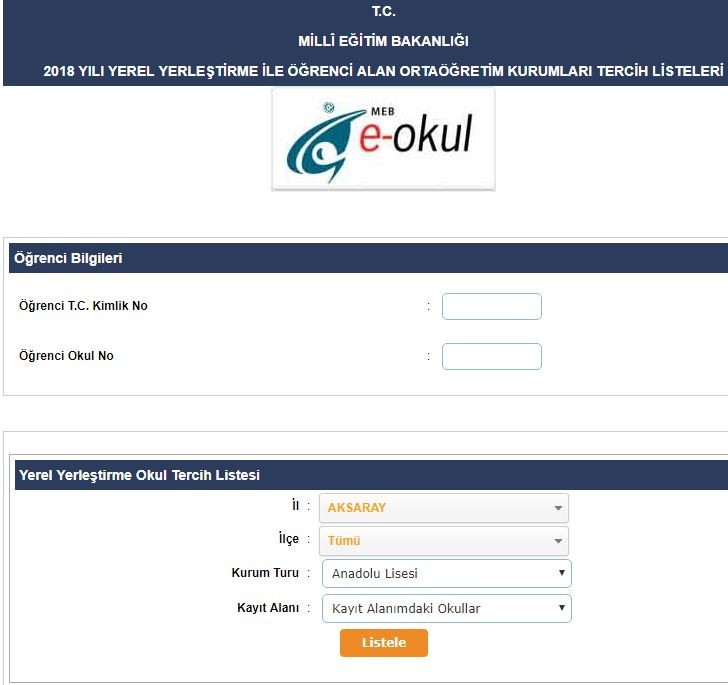 Liselere Giriş Sınavı LGS 2018 sonuçlarının açıklanmasının ardından liselere yerleşmek için binlerce öğrenciyi şimdi de tercih heyecanı sardı. Akaray lise taban puanlarını MEB e okul üzerinden öğrenilebilecek. Aksaray'ın tüm liseleri 2018 2019 taban puanları, yüzdelik dilim YEP puanları ve kontenjanları açıkladı.