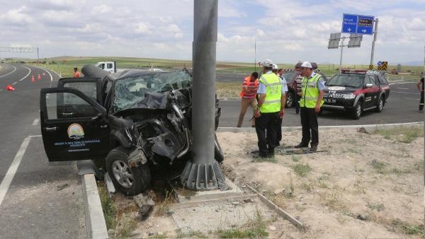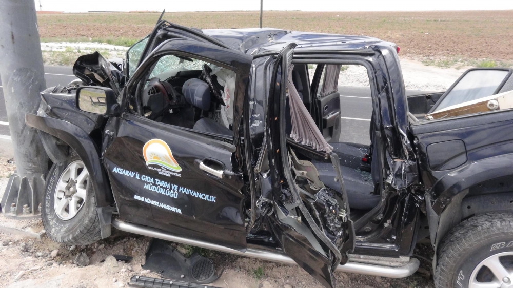 Aksaray'da Gıda, Tarım ve Hayvancılık İl Müdürlüğü’nde ait kamyonetin kontrolden çıkıp refüjdeki yön levhası direğine çarpması sonucu 4 kişi yaralandı.