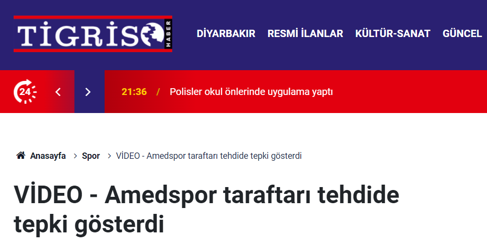 Tribünlerinde PKK terör örgütü lehine sloganlar atan, futbolu siyasete alet ederek provokatif eylemlerle stat olaylarına sebep olan Amedspor taraftarına Aksaraylılardan net bir uyarı gelmişti. Diyarbakır'da yerel yayın yapan Tigris Haber, Amedsporlu taraftarları kışkırtmaya çalıştı.