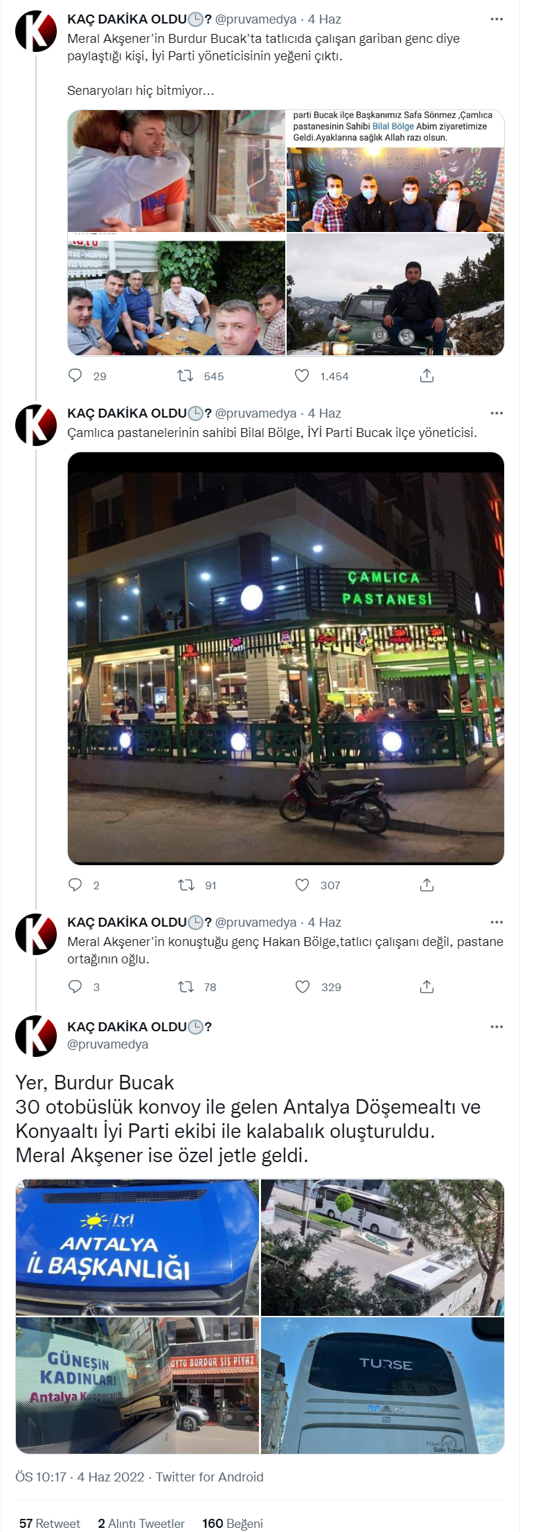 İYİ Parti Genel Başkanı Meral Akşener'in "gariban" algı oluşturduğu "tatlıcı çocuk" tiyatrosunun perde arkası ortaya çıktı. Fırsat eşitliği olmayan, gariban diye gösterilen ve öfkeli olduğu öne sürülen gencin ekonomik durumu iyi olan lüks pastanelerin sahibi bir ailenin çocuğu olduğu ve İYİ Parti yöneticisi Bilal Bölge'nin de yeğeni olduğu ortaya çıktı.