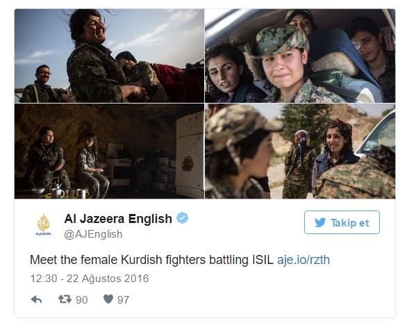 Al-Jazeera'nın İngilizce yayın yapan sayfasında Mauricio Morales imzalı YPG teröristleriyle yayımlanan haberinde, "DAEŞ'le mücadele eden Kürt kadın savaşçılar" başlığı kullanıldı. Halep ilinin 90 kilometre doğusunda, Fırat Nehri üzerinde yer alan Teşrin Barajı yakınlarında teröristlerle röportaj yapan Al-Jazeera haberinde DAEŞ'e karşı yeni bir operasyon başlatıldığını duyurdu.