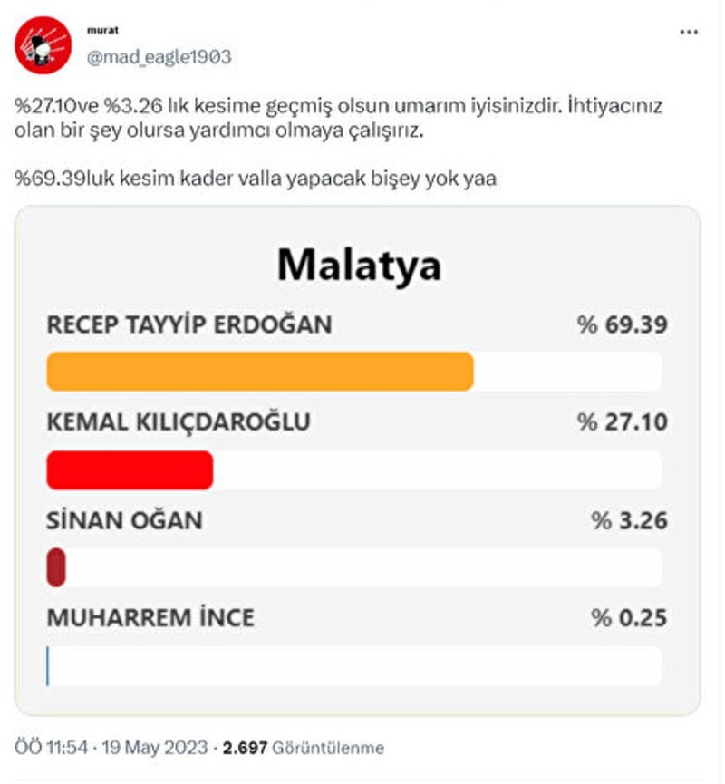 14 Mayıs seçimlerinde Cumhurbaşkanı Erdoğan deprem bölgelerinde fazla oy aldığı muhaliflerin depremzedelere yönelik başlattığı nefret propagandasının devam ettiği görüldü.