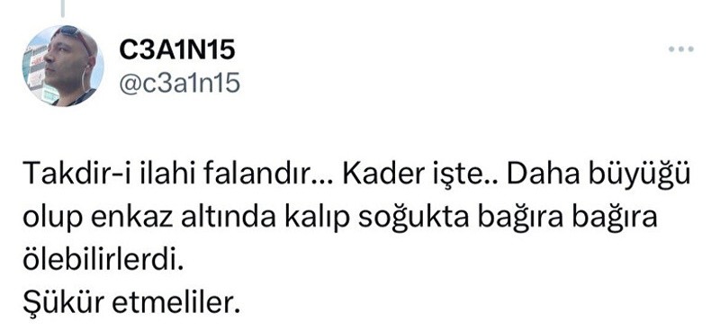 Seçim sonuçlarına öfkelenen kesim, afetzedelere yönelik insanlık dışı hareket ve söylemler sarf etti. Sosyal medyada, ölüm tehditleri savurdu, tehdit ve hakaret dolu videolar paylaşarak nefret saçtılar.