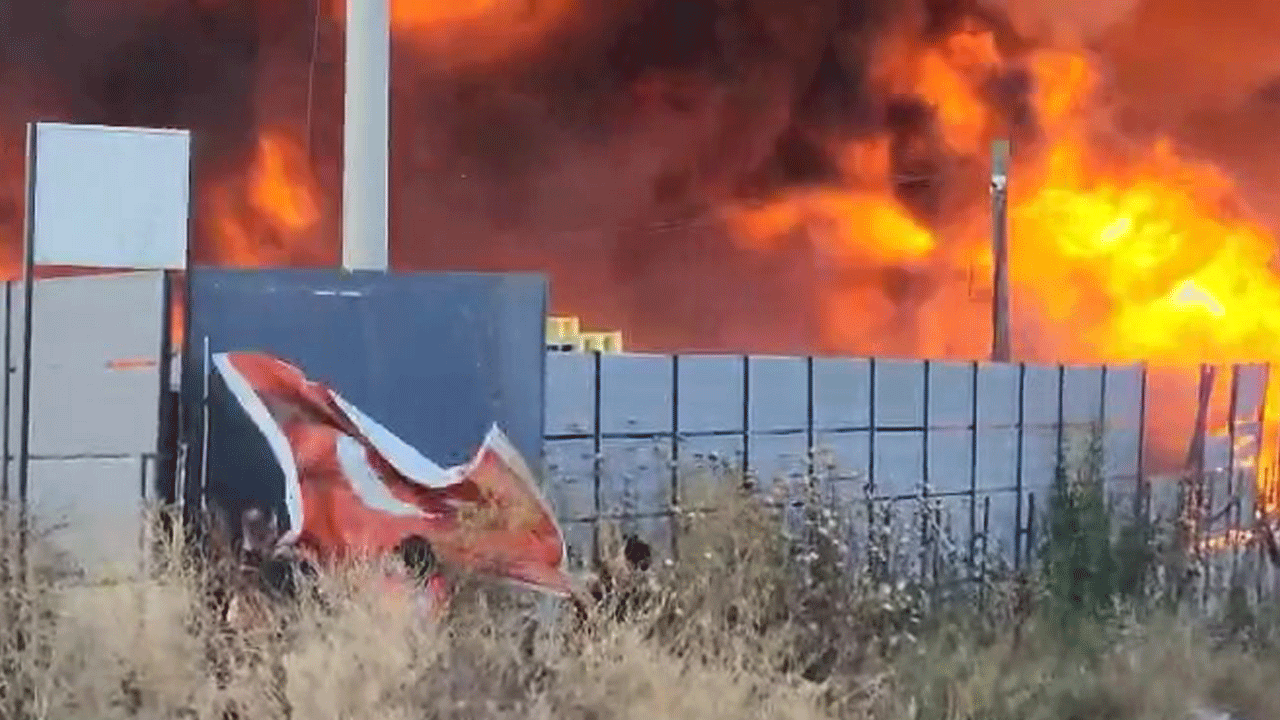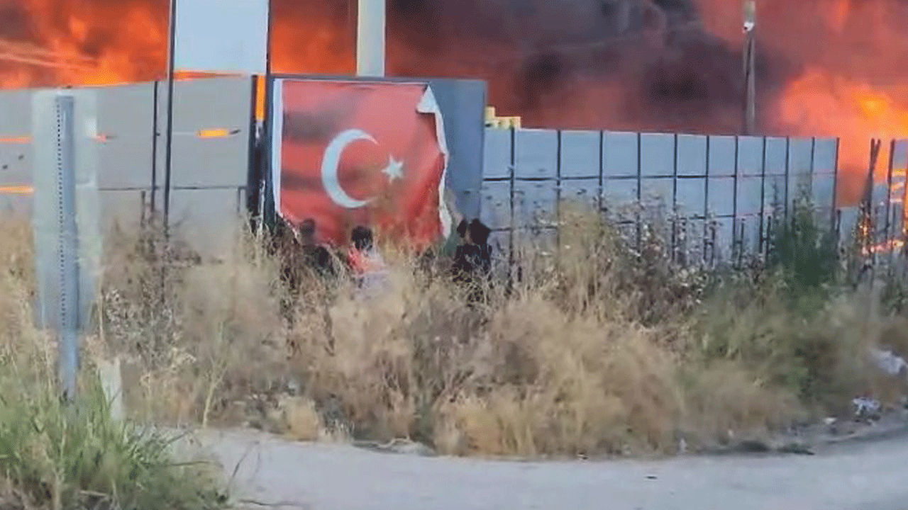 Yanan fabrikanın duvarındaki Türk bayrağı ise çevrede güvenlik önlemi alan sivil polisler ve arama kurtarma ekipleri kurtarıldı.