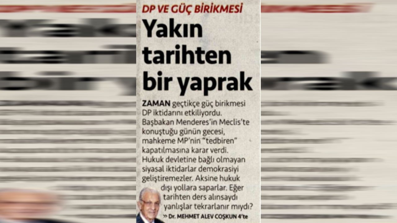 Cumhuriyet gazetesi yazarı ve Cumhuriyet Vakfı Başkanı Alev Coşkun, bugünkü köşesinde Demokrat Parti dönemine yönelik ağır ithamlarda bulundu. Adnan Menderes’in “güç birikmesi” yaşadığını öne süren Coşkun, Menderes’in katledildiği süreci hatırlatırcasına, darbenin zeminini hazırlayan CHP’nin rolünü göz ardı ederek dikkat çeken ifadeler kullandı.
