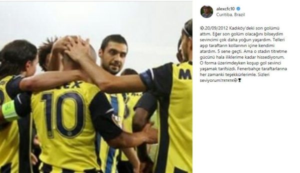 Fenerbahçe’nin gelmiş geçmiş en iyi futbolcularından biri olan Alex de Souza, sarı-lacivertli kulübe olan gönül bağını bir kez daha gösterdi. Instagram hesabından yaptığı paylaşımla bugünün kendisi için önemini anlatan Alex de Souza, takipçilerini duygulandırdı.