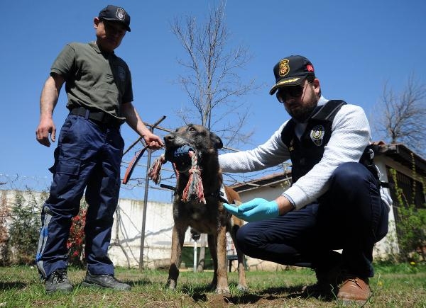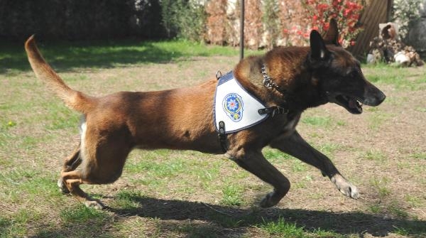 Ankara Uyuşturucu Daire Başkanlığı Köpek Eğitim Merkezi'ndeki 4 aylık sıkı eğitimin ardından Bursa Emniyet Müdürlüğü'ne gönderilen narkotik madde arama köpeği Belçika Malinoise cinsi 'Alfa', polis memuru Necmettin Ülker'e teslim edildi.