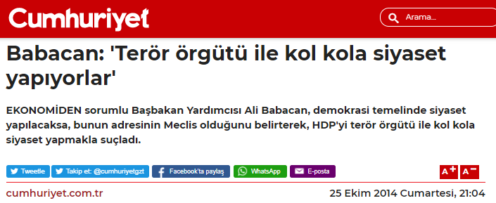 Babacan HDP'nin kapatılması istemiyle ilgili olarak yaptığı açıklamada, "Siyasi meşruiyet toplum desteği ile sağlanır. 6 milyon oy alan bir partiyi yargı yoluyla engellemeye çalışmak oy veren milletimize saygısızlıktır. Demokrasimiz, farklı fikirlerin konuşulduğu bir ortamda gelişebilir. Siyasetin yolunu kapatmak ülkeyi çözümsüzlüğe hapsetmektir." ifadelerini kullandı.