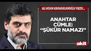 Yeni Akit Gazetesi Yazarı Ali Karahasanoğlu, 'Anahtar cümle: “Şükür namazı”' başlıklı bir yazı kaleme aldı. Karahasanoğlu yazısında, 'Cumhurbaşkanı Tayyip Erdoğan’ın önceki günkü Gazze ile ilgili “anahtar cümlesi”, tıpkı Suriye’de geç de olsa başarılan zaferin işaret fişeğine benzer şekilde “şükür namazı”na atıf ileydi.." ifadelerine yer verirken, daha sonra yazısında şu tespitleri yaptı: