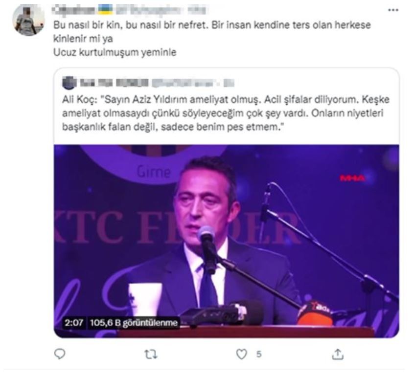 Başkan Ali Koç'un, ciddi bir ameliyat geçiren Aziz Yıldırım'a sağlık durumu üstünden gönderme yapması taraftarları çok kızdırdı. Başkan Koç hakkında çok sert paylaşımlar yapıldı.