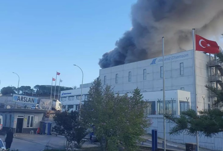 İzmir'in Aliağa Organize Sanayi Bölgesi'nde kimyasal madde üreten fabrikada saat 11.00 sıralarında yangın çıktı.