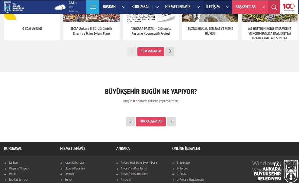 Sitede yer alan “BÜYÜKŞEHİR BUGÜN NE YAPIYOR” başlıklı alana bakan Ankaralılar, “Bugün 0 noktada çalışma yapılmaktadır” bilgisiyle karşılaşıyor.