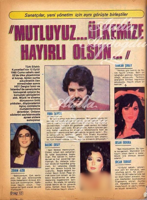 34. yılında lânetle anılan 12 Eylül 1980 askerî darbesinin gerçekleştiği günlerde cuntayı destekleyen 'ünlüler' de olmuştu...