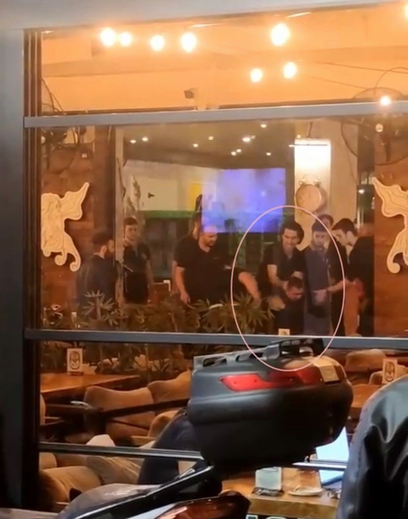 O anlar ise cep telefonu kamerasıyla saniye saniye kaydedildi. Görüntülerde, şahsın kafeden dışarıya çıkarılarak uzaklaştırıldığı anlar yer aldı.