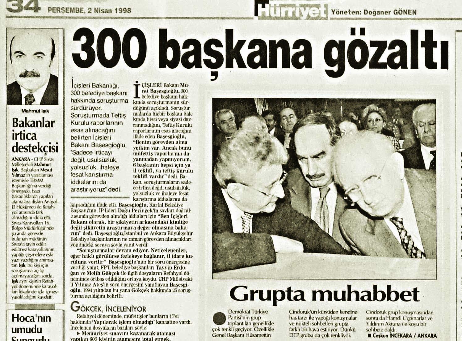 Günümüzde terör bağlantılarıyla ilgili haklarında yüzlerce delil bulunan HDP’li belediye başkanlarının görevden alınmasına tepki gösterip ortalığı velveleye veren azgın azınlık, 28 şubat sürecinde hiçbir delil bulunmaksızın sadece ‘Allah’ dediği yada şiir okuduğu için görevden alınan belediye başkanlarına kör ve sağırdı. Laikçi düzenbazların Müslümanların üzerinden silindir gibi geçtiği 28 Şubat sürecinde 2 Nisan 1998’de İçişleri Bakanlığı’nın 300 belediye başkanı hakkında soruşturma açılmasına çıt çıkarılmadı. Darbe şakşakçısı Hürriyet gazetesi, milli iradeye vurulan darbeyi “300 başkana büyük gözaltı” başlığıyla sevinç sözcükleriyle haberleştirdi.