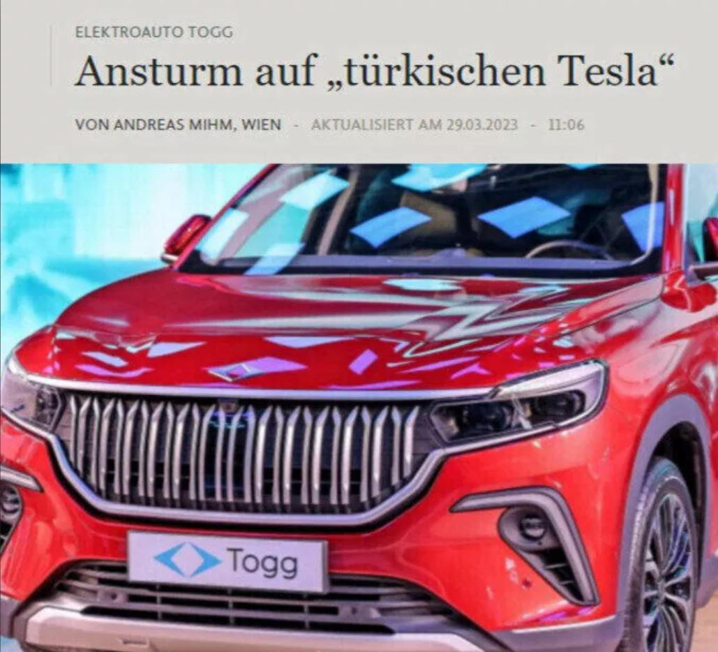 Frankfurter Allgemeine Zeitung (FAZ) gazetesi, "Türk Tesla'sına akın" başlıklı haberinde yoğun ilgiyi okurlarıyla paylaştı.