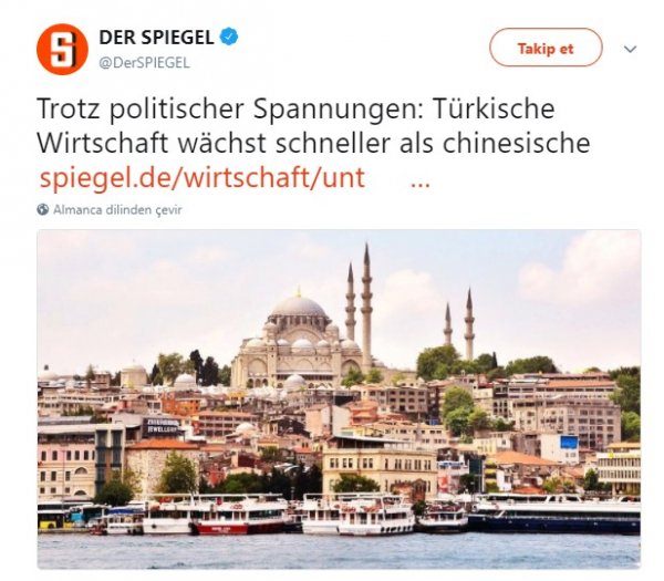 Ülkede yayın yapan Der Spiegel'de çıkan haberde, Türk ekonomisinin yakaladığı büyüme rakamlarının Çin'i bile geride bıraktığının altı çizildi.