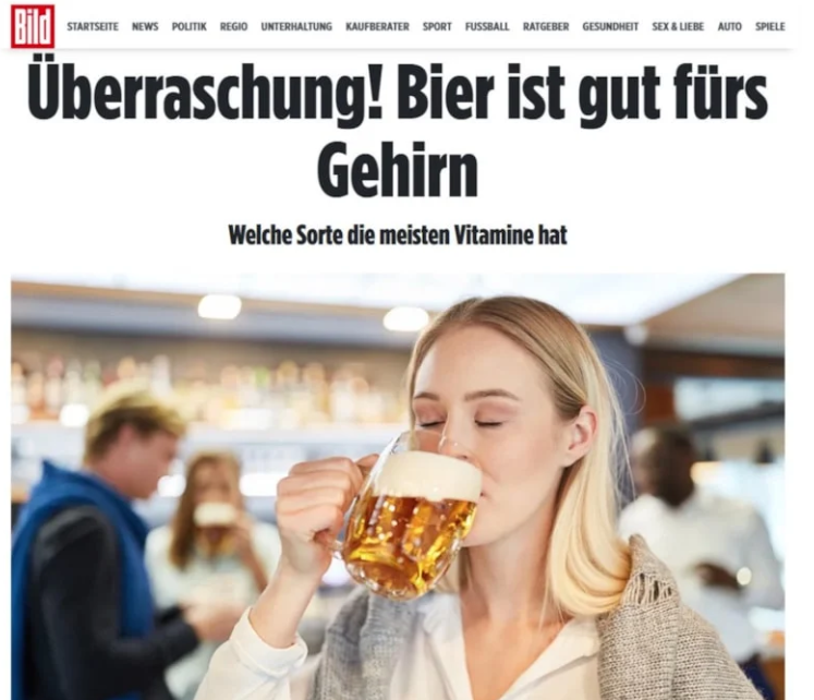 Bira krizi karşısında panik yapan Almanlar, dev ekonomiyi kaybetmemek için gazetelere para karşılığı alkole karşı güzelleme makaleleri vermeye başladı. Bu haberlerden biri de Almanların en yüksek tirajlı gazetelerinden olan Bild'de yer aldı. Yapılan haberde, biranın insan beynini zeki yaptığı iddia edilerek şu ifadelere yer verildi: